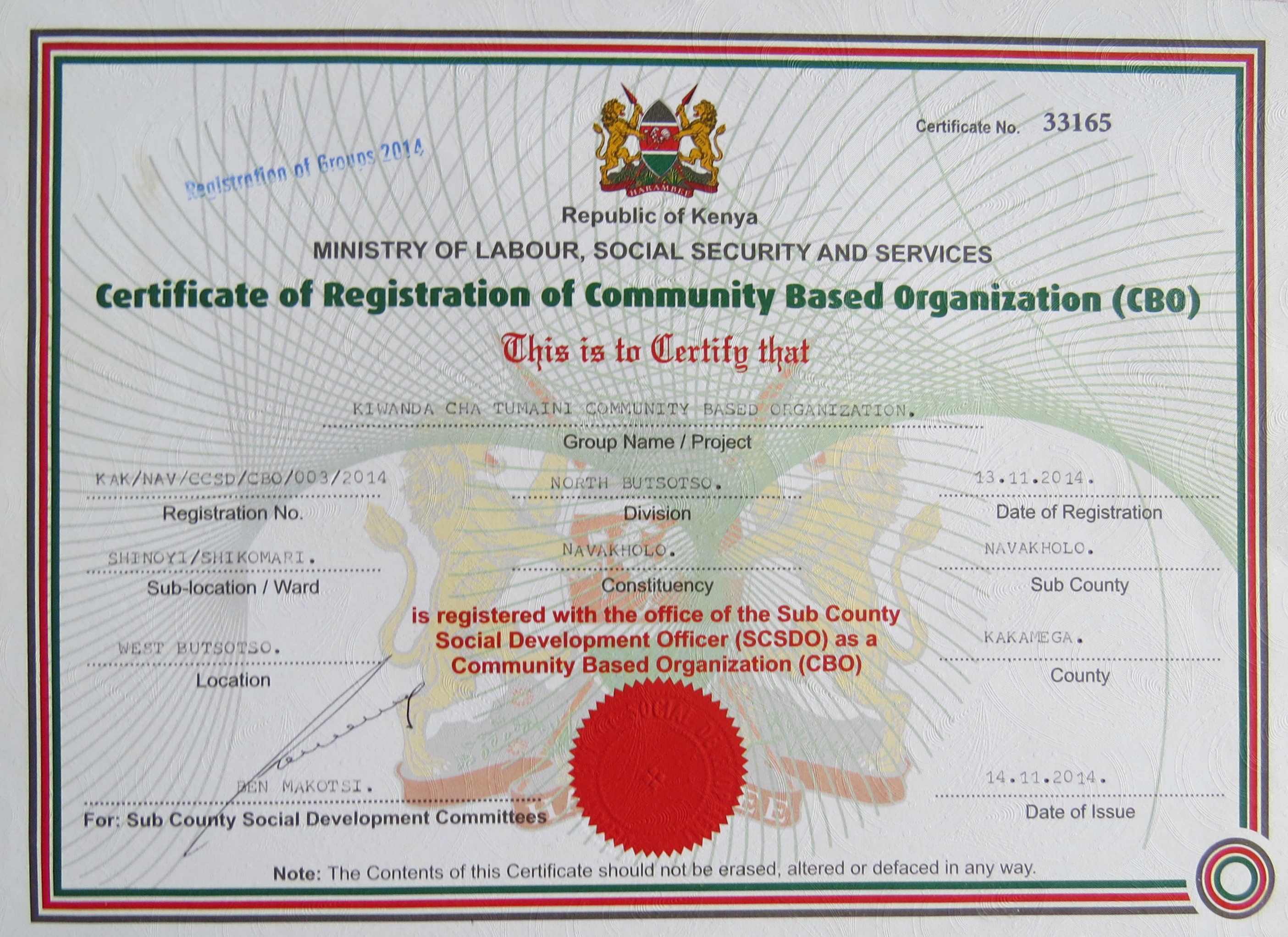 November 21, 2014 CBO Certificate 2809 × 2044 in IT’S OFFICIAL!! We are Kiwanda Cha Tumaini!! Share this: Click to share on Facebook (Opens in new window) Facebook Click to share on X (Opens in new window) X Click to share on WhatsApp (Opens in new window) WhatsApp Click to email a link to a friend (Opens in new window) Email Like Loading...